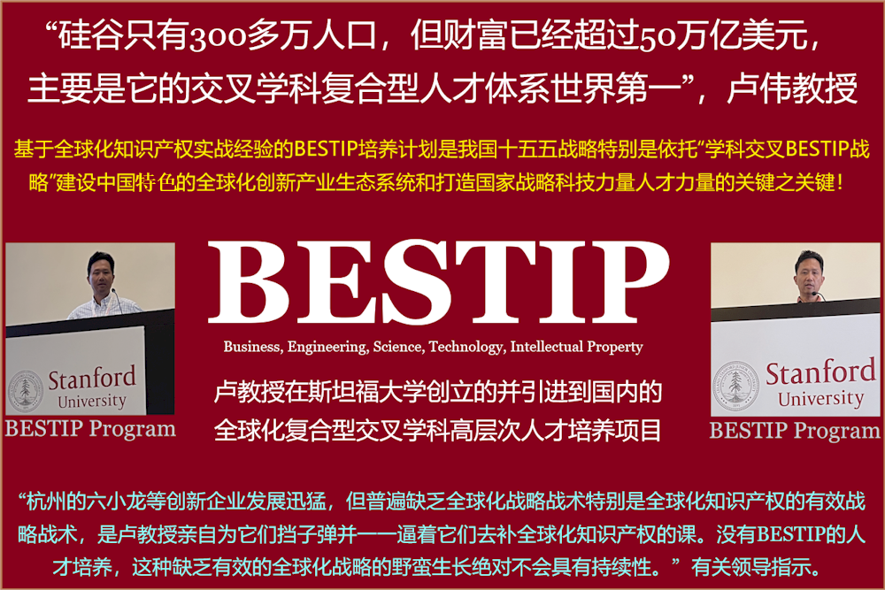 在2014年,卢教授将他在斯坦福大学创立的BESTIP交叉学科培养计划引进到国内并在浙江大学开设BESTIP复合型交叉学科培养课程,至今已经培养了6000多BESTIP优秀学生。 (学生从卢教授课堂上整理而成。老师个人观点,供教育目的之用。Personal views only, nothing is waived.)